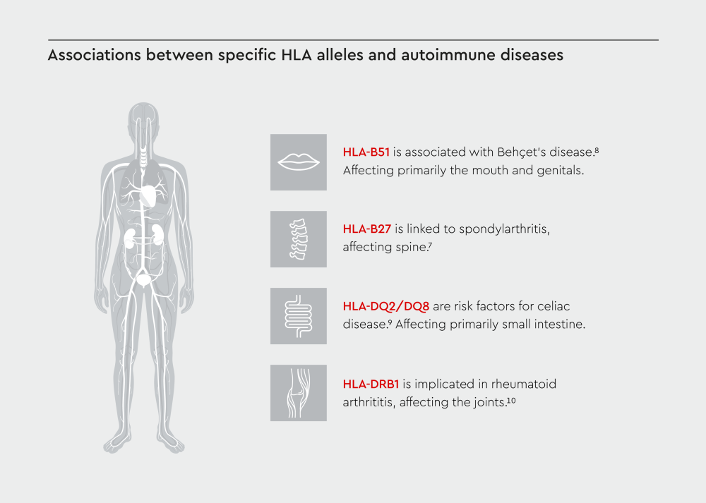These associations help researchers understand the mechanisms of immune system dysregulation and guide the development of diagnostic biomarkers and targeted therapies.11 HLA typing is now routinely used in the diagnostic workup for certain autoimmune conditions.